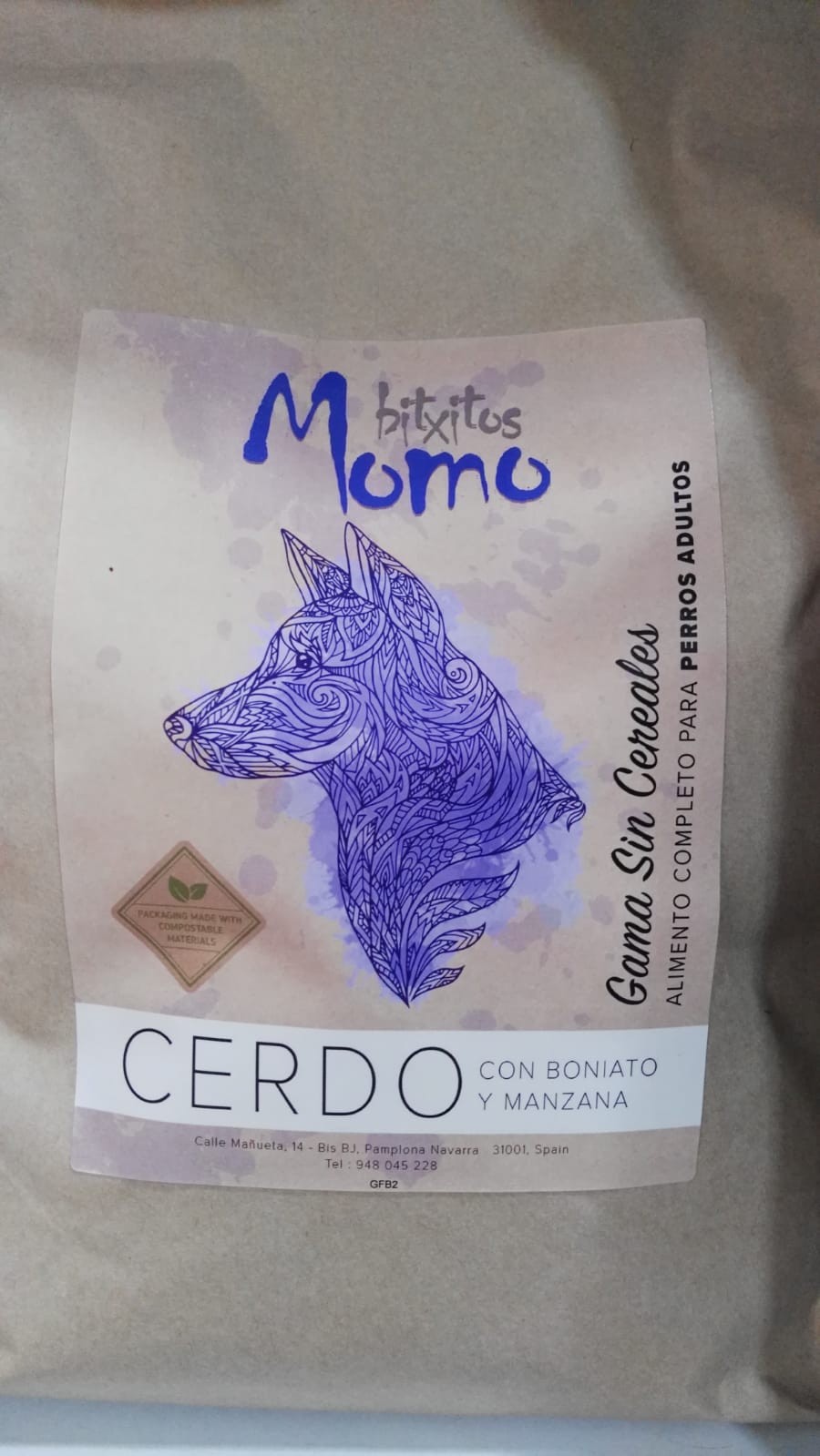 Composición: 50% cerdo (31% carne cerdo fresca, 18% cerdo deshidratado, caldo de cerdo 1%), boniato, guisantes, patata, pulpa remolacha, semillas de lino, suplemento omega 3, manzana, minerales,caldo verduras, FOS 96mg/kg, MOS 24gr/kg